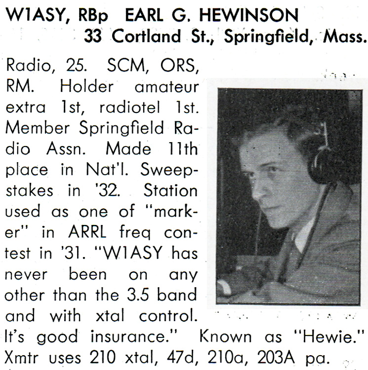 W1ASY, W1RB/p Springfield, Massachusetts Operator: Earl G. Hewinson