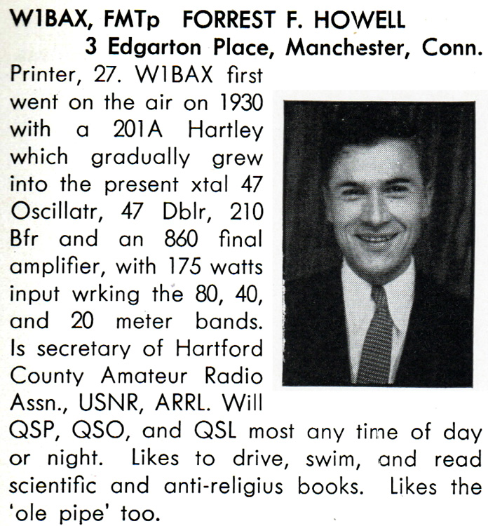 W1BVAX, W1FMT/P Manchester, Connecticut Operator: Forrest F. Howell