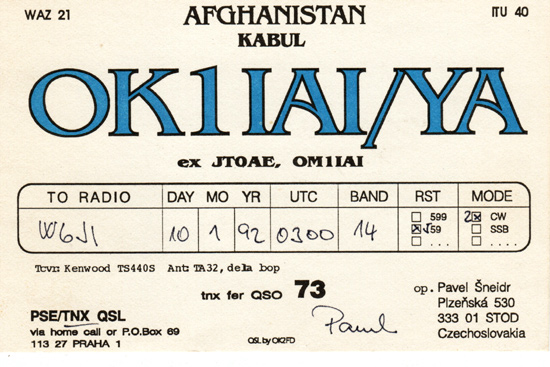 OK1IAI/YA 1992 Afghanistan
