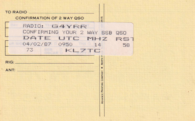 KL7TC 1987 Alaska