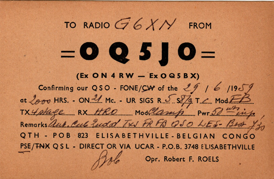 OQ5JO 1959 Belgian Congo