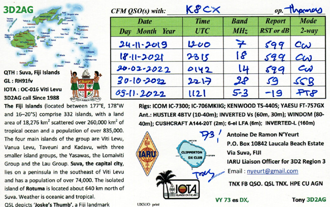 Listen to 3D2AG in 2021 on 20 Meter CW!