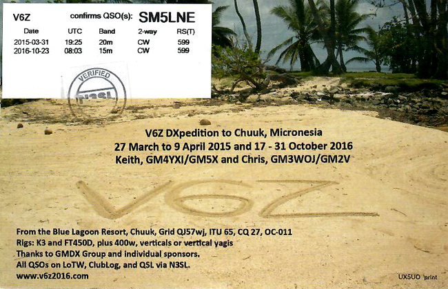 Listen to V6Z in 2015 on 15 Merter CW Listen to V6Z in 2015 on 30 Merter CW Listen to V6Z in 2016 on 17 Merter CW