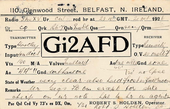 GI2AFD 1926 Northern Ireland