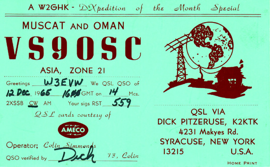 VS9OSC 1965 Muscat and Oman