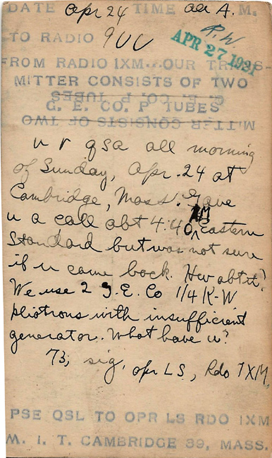 M.I.T. Radio Society Became W1MX, Established 1909 America's Oldest College Amateur Radio Station