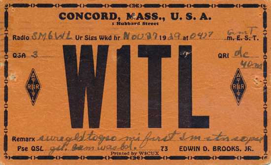 W1TL 1929 Concord, Massachusetts
