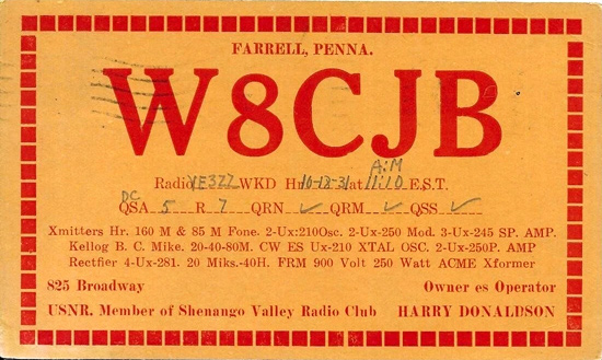W8CJB 1931 Farrell, PA
