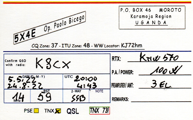Listen to 5X4E in 2022 on 15 Meter SSB