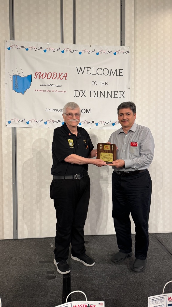 During the May 16, 2025 Dayton SWODXA DX Dinner at the Marriott Hotel, Nodir Tursun-Zade EY8MM was inducted into the Heritage CQ DX Hall of Fame now under the stewardship of INDEXA.