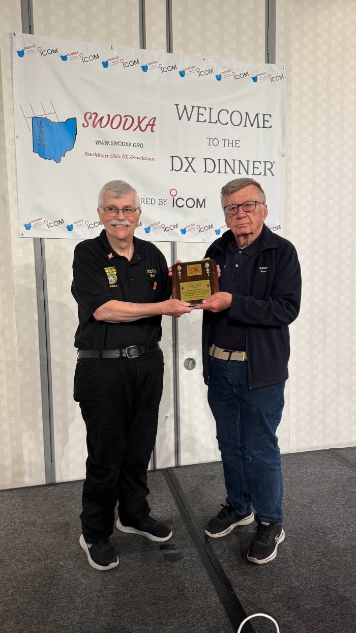 Fred W3ICM (r) accepting the CQ DX Hall of Fame plaque for S53R