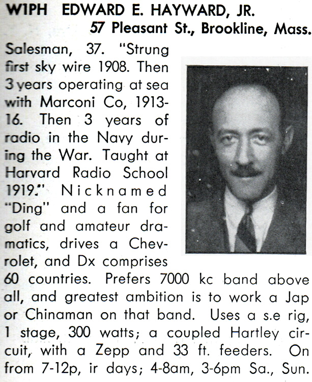 W1PH Brookline, Massachusetts Operator: Edward E. Hayward, Jr.