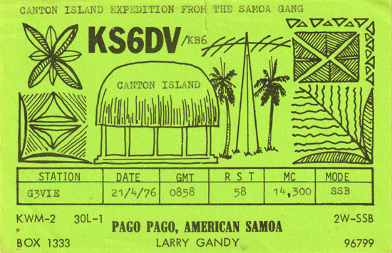 KS6DV/KB6 1976 Canton Island