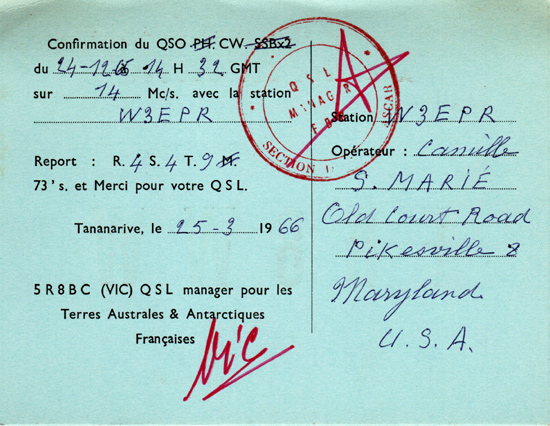 FB8WW 1965 Crozet Island