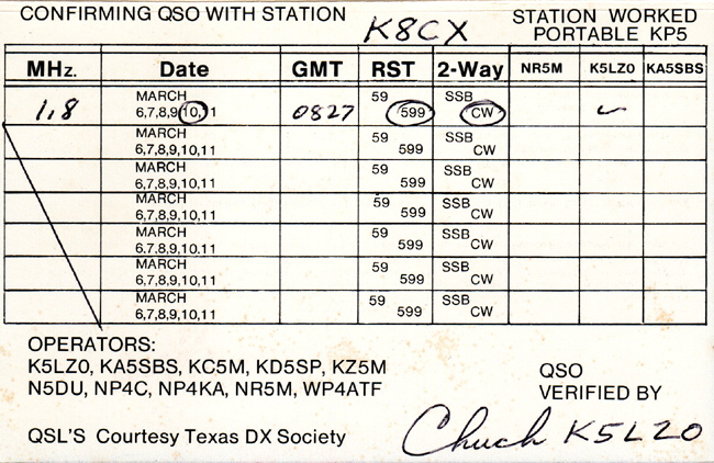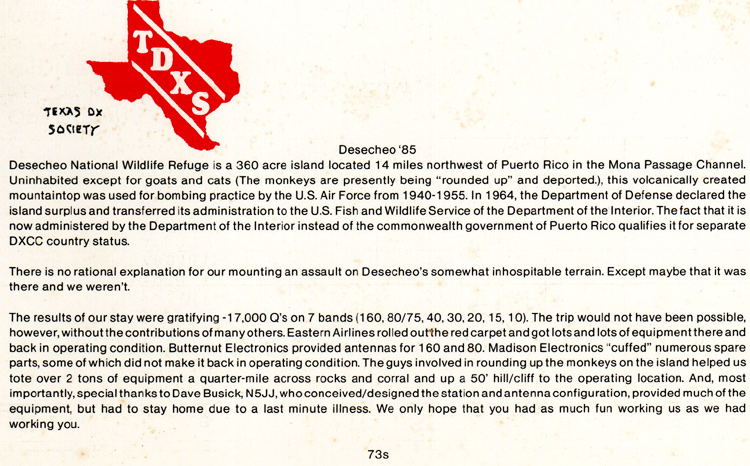 K5LZO/KP5 1985 Desecheo Island